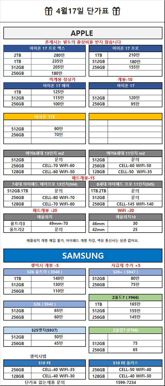 [공지] 2021년 8월 24일 공시지원금 및 출고가 변경사항
