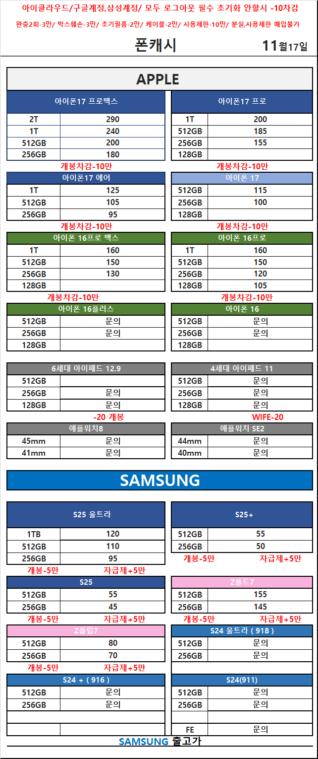 [공지] 2021년 8월 24일 공시지원금 및 출고가 변경사항